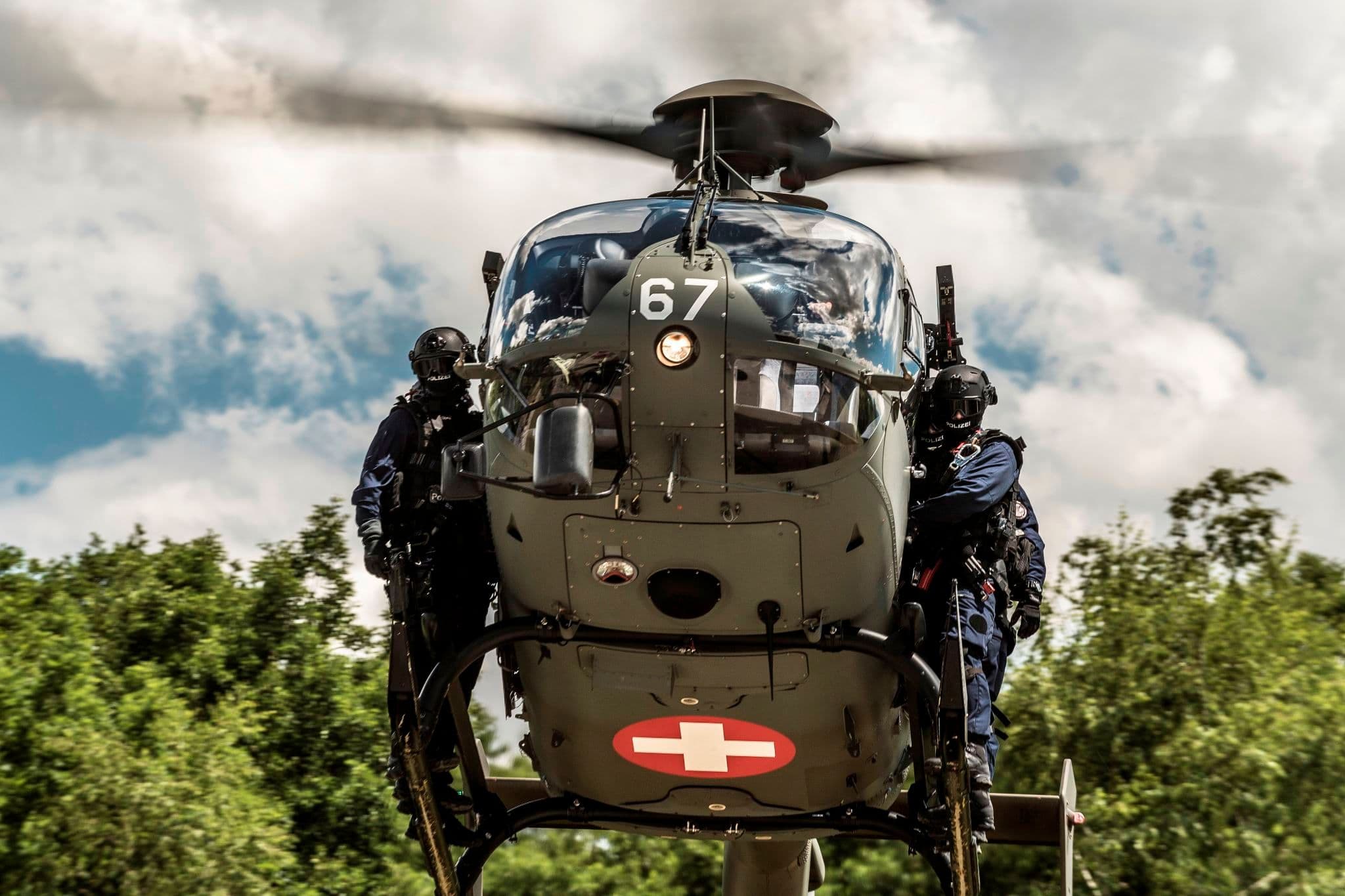 „Diese Trainingseinsätze fordern eine sehr hohe Konzentration aller Beteiligten“ bemerkt der Pilot, welcher aus Sicherheitsgründen nicht mit Namen genannt werden kann. „Es ist wichtig, dass wir im Vorfeld mit der Polizei alles genau absprechen und die Abläufe minutiös durchgehen“. Und selbst dann kann in einem Live-Einsatz immer etwas Unerwartetes geschehen. Deshalb trainiert die Interventionseinheit regelmässig zusammen mit der Luftwaffe die verschiedenen Szenarien. Dazu wird der Helikopter mit Spezialequipment versehen, welches den Polizisten einen schnellen Transport und das Abseilen aus der Luft ermöglicht.