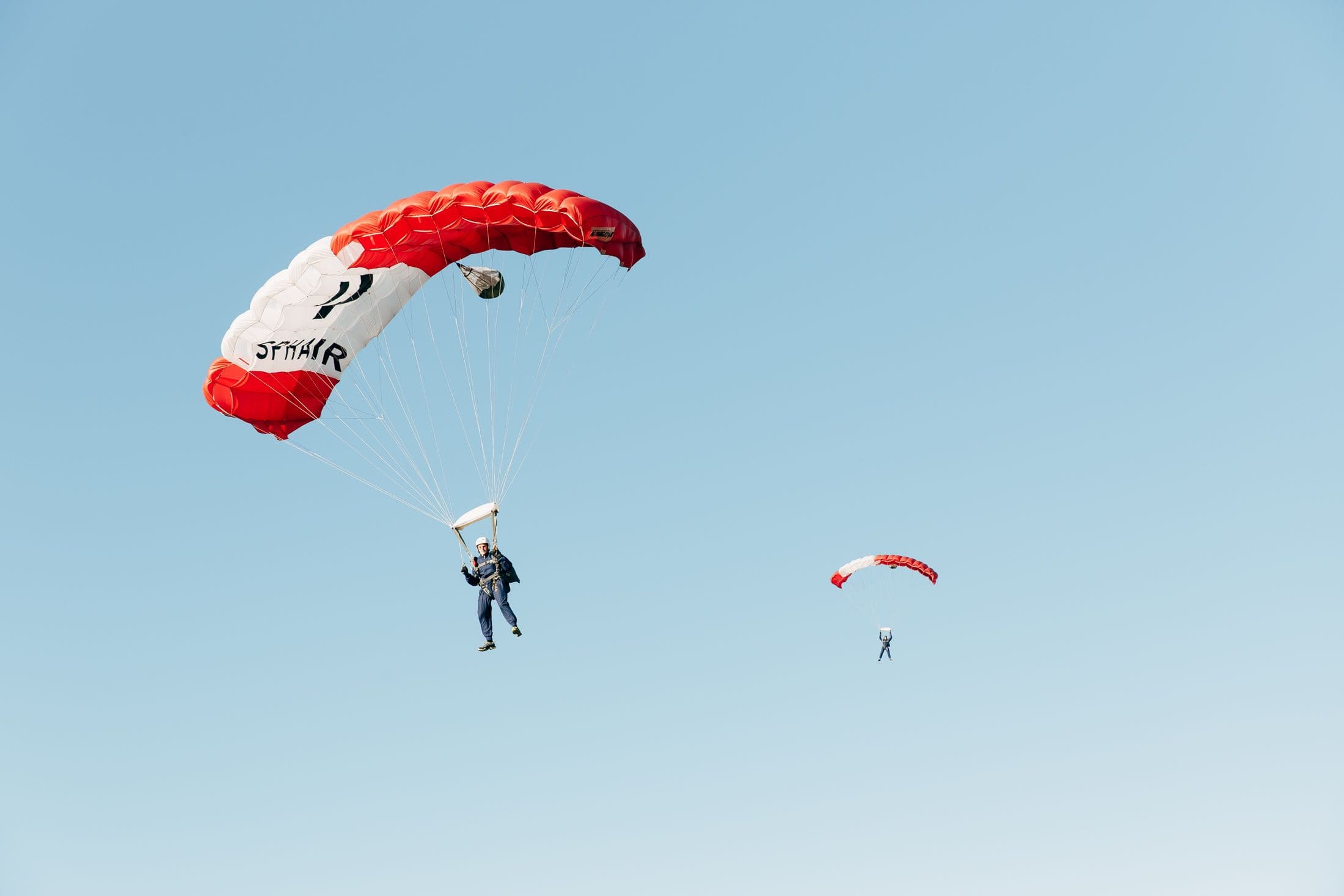 Die ersten beiden Tage mussten wir ohne Absprünge hinter uns bringen, da wir die ganzen Prozedere auffrischen und teils anpassen mussten. Eine Anpassung war die Umschulung des Griffes. Bis anhin zogen wir an einem Griff, welcher auf beckenhöhe am Rücken war. Da die Sprünge im Militär meist mit viel Gepäck absolviert werden, würde man nicht an diesen Griff kommen, weswegen er an einem gängigeren Ort angebracht wird - vorne auf Brusthöhe. Dieser neue Ort war ungewohnt, weshalb wir uns das abgeänderte Öffnungsprozedere neu einprägen mussten. Mit dem Bestehen des «Test Sécurité» konnte das Sprungprogramm beginnen. Von Salti in alle Richtungen, Drehungen entlang der Längsachse und Treckings sodass von einem stabilen und kontrollierten Freifall gesprochen werden kann, war alles dabei. Mit diesem Können konnten dann die RW-Sprünge erfolgen. Diese Sprünge beinhalten das sichere Annähern an den Sprunglehrer und das anschliessende Erstellen eines Kontaktes. Dabei musste man wie immer den Höhenmesser im Auge behalten, woran bei diesen Sprüngen nicht alle immer selbstständig dachten. Zum Glück haben die Sprunglehrer einen grossen Haufen mehr Erfahrung und Routine und machten die «vergesslichen» genug früh auf die Höhe aufmerksam.