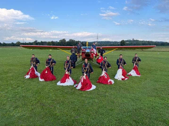 Bevor wir zum lang erwarteten Moment des RV (Relativflug) übergingen, dessen Ziel es ist, während des freien Falls Kontakt mit einer anderen Person herzustellen. Wir mussten wissen, wie man einen Sturzflug durchführt, um schnell an Höhe zu verlieren, damit wir zu unserem Partner aufschließen konnten, und uns dann in eine Nachführposition begeben. Dies ermöglicht es uns, eine große horizontale Distanz zurückzulegen, die uns bei der Trennung vor der Öffnung nützlich ist. Bei den VRs erfolgt der Ausstieg aus dem Flugzeug durch einen Sprung, bei dem wir kopfüber aus 3'200 m Höhe abspringen. Dazu konnten wir uns direkt mit dem Flugzeug vertraut machen, während es sich am Boden befand, indem wir die gesamte Abwurfsequenz durchführten. Nachdem wir von unserem Buddy-Instruktor gebrieft worden waren, waren wir bereit für unseren ersten VR. Die Zeit für die praktische Prüfung war gekommen. Einige hatten bereits mehrere VRs absolviert, für andere war es noch der Anfang. Egal, das Ziel war das gleiche: sauberer Absprung, die Höhe im Griff haben, den Kontakt herstellen, trennen. Schließlich kam unser letzter Sprung. Ein einzigartiger Sprung, denn es war der letzte in unserem SPHAIR-Kurs. Bei der Landung schauen alle nach oben, um zu sehen, wie die Letzten ankommen. Wir sind alle stolz auf unsere Fortschritte und auf das, was wir gerade erreicht haben. Unser Lehrer ist es auch, wir sind fast alle lizenziert!